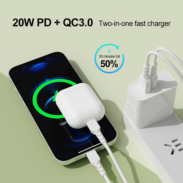 1、只需半小時(shí)充電50%左右,搭配Type-c至Lighting快充線使用